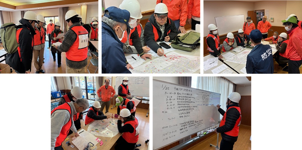 自治会役員や防災リーダーがそれぞれ役割分担を行い、地域の情報収集、要支援者の安否確認と避難支援、火災への対応などを行いました。