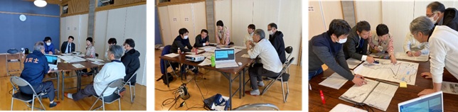 質疑応答の後、それぞれ自主防災組織(美鈴が丘区、希みが丘区)に分かれてワークショップ(WS)を行い、平時からの要支援者の情報共有のしかた、災害時の要支援者の安否確認、組織的な避難支援のやり方など、それぞれ地域の実情に応じた具体的な避難行動要支援者支援のあり方や手法について意見交換を行いました。
