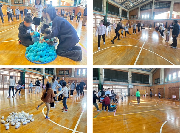 今年度は子どもたちがより多く餅を拾えるように配置を工夫して行い、子供たちの歓声で大変盛り上がりました。